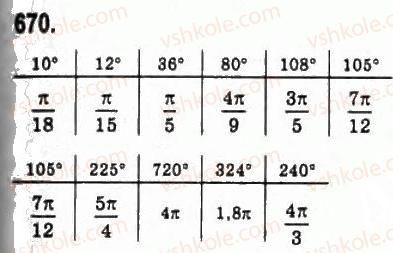 Завдання 670 - 33. Радіанне вимірювання кутів - § 4. Тригонометричні функції