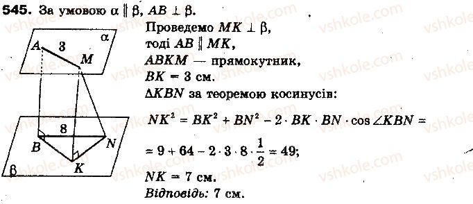 Завдання 545 - § 14. Перпендикуляр і похила до площини - РОЗДІЛ 4. ПЕРПЕНДИКУЛЯРНІСТЬ ПРЯМИХ І ПЛОЩИН У ПРОСТОРІ |