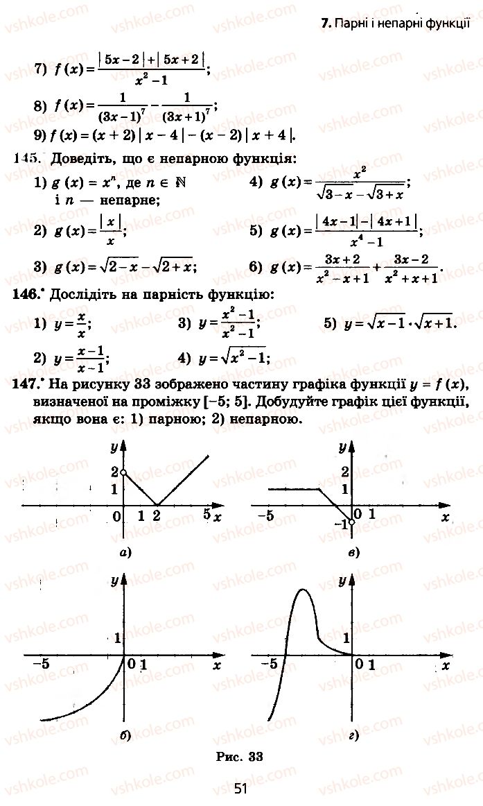 § 2. Функції, многочлени, рівняння і нерівності - 7. Парні і непарні функції