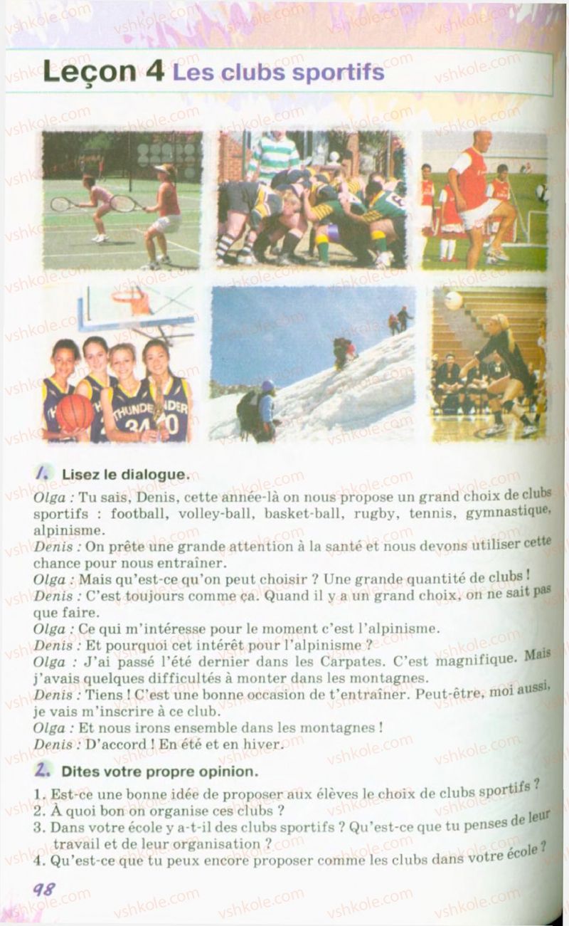 Страница 98 | Підручник Французька мова 10 клас Ю.М. Клименко 2010 6 рік навчання