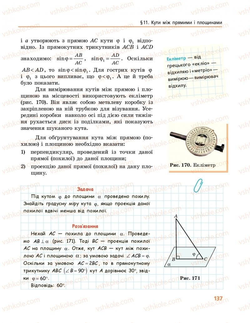 Розділ ІІІ. Перпендикулярність прямих і площин у просторі - § 11. Кути між прямими і площинами