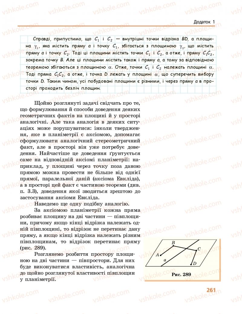 Додатки - Додаток 1. Про аксіоми стереометрії та її зв’язок із планіметрією