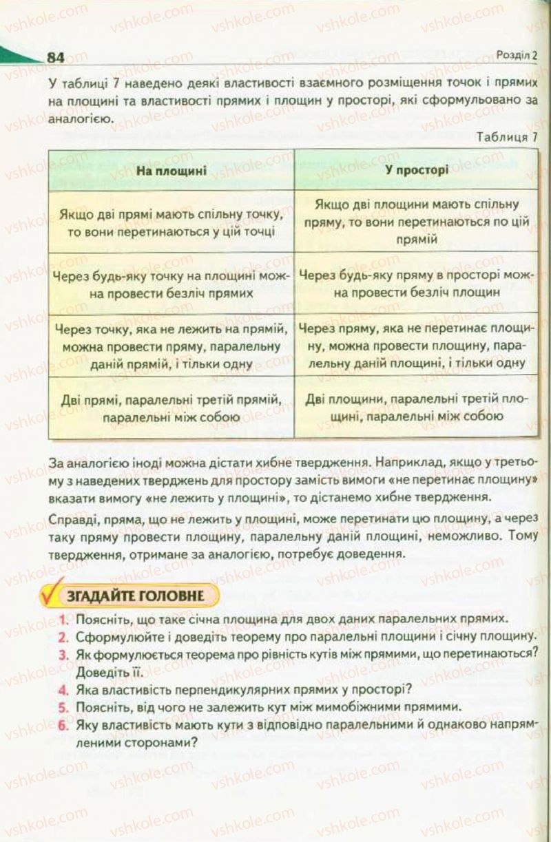 РОЗДІЛ 2. ПАРАЛЕЛЬНІСТЬ ПРЯМИХ І ПЛОЩИН У ПРОСТОРІстр. 48 - 105