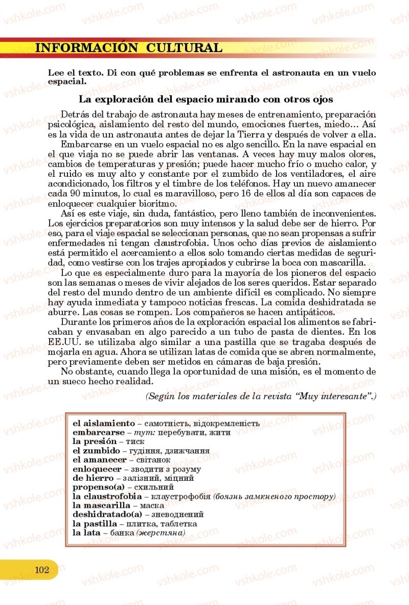 Страница 102 | Підручник Іспанська мова 10 клас В.Г. Редько, В.І. Береславська 2018 10 рік навчання