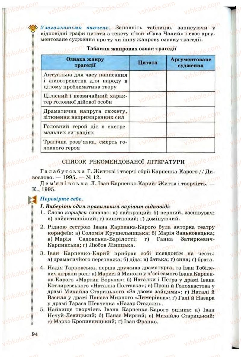 Підручник Українська література 10 клас Г.Ф. Семенюк, М.П. Ткачук, О.В. Слоньовська (2010 рік) Профільний рівень