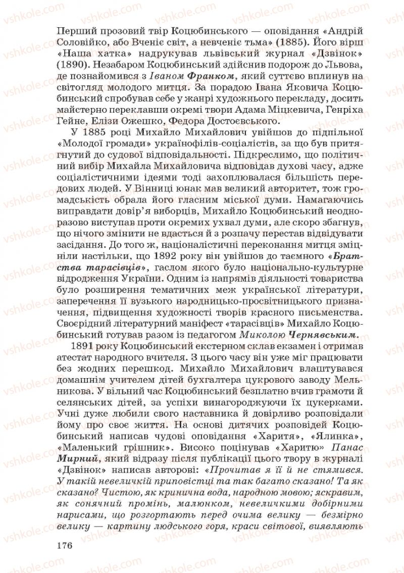 Страница 176 | Підручник Українська література 10 клас Г.Ф. Семенюк, М.П. Ткачук, О.В. Слоньовська 2010