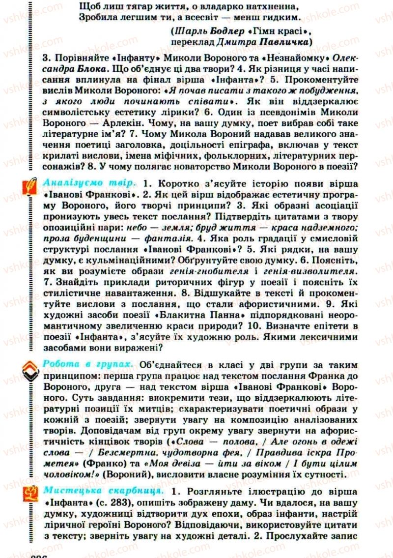 Страница 286 | Підручник Українська література 10 клас Г.Ф. Семенюк, М.П. Ткачук, О.В. Слоньовська 2010