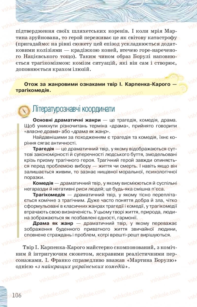 Страница 106 | Підручник Українська література 10 клас Л.Т. Коваленко, Н.І. Бернадська 2018 Рівень стандарту