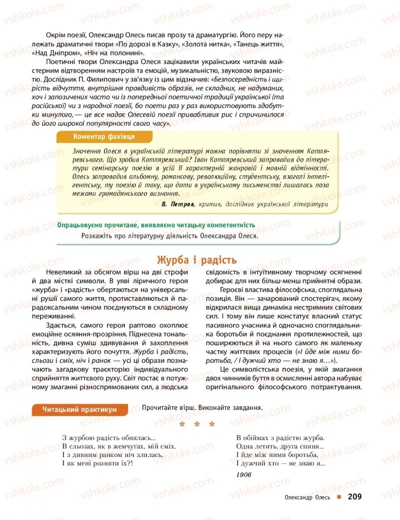 Страница 209 | Підручник Українська література 10 клас О.І. Борзенко, О.В. Лобусова 2018 Профільний рівень