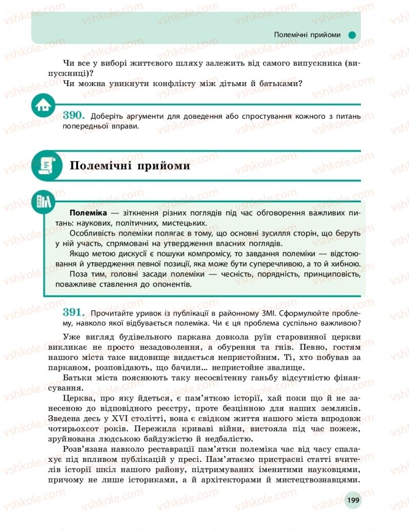 Страница 199 | Підручник Українська мова 10 клас О.П. Глазова 2018