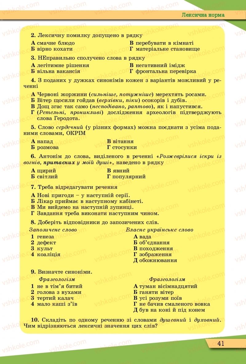Страница 41 | Підручник Українська мова 10 клас О.В. Заболотний, В.В. Заболотний 2018 Рівень стандарту