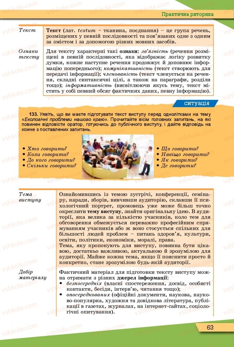 Страница 63 | Підручник Українська мова 10 клас О.В. Заболотний, В.В. Заболотний 2018 Рівень стандарту