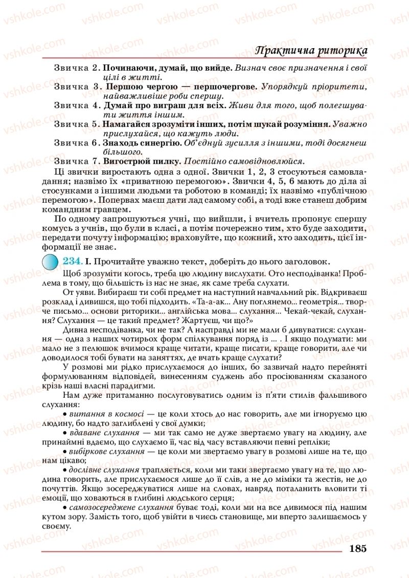 Страница 185 | Підручник Українська мова 10 клас С.В. Шевчук 2018
