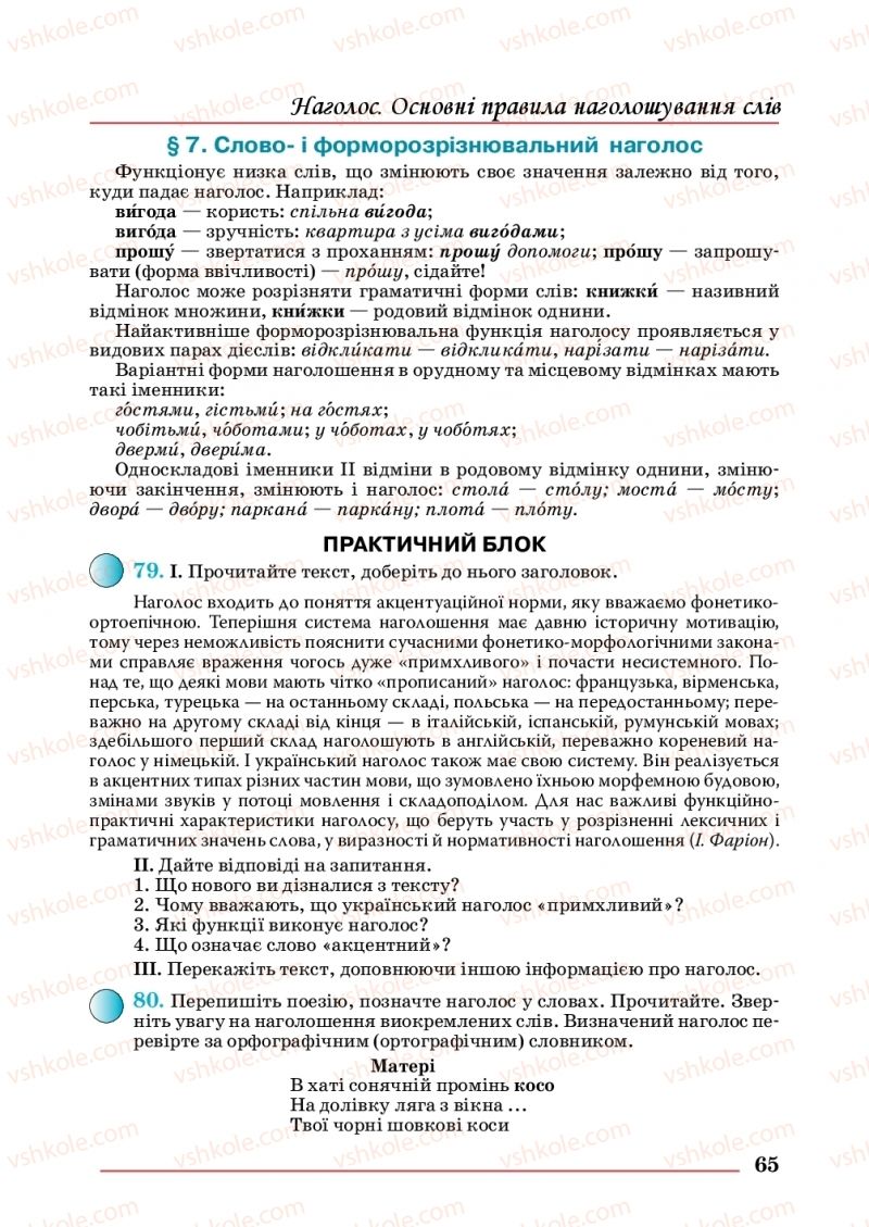 Страница 65 | Підручник Українська мова 10 клас С.В. Шевчук 2018