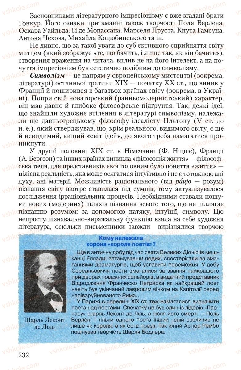 Страница 232 | Підручник Зарубіжна література 10 клас Ю.І. Ковбасенко 2010