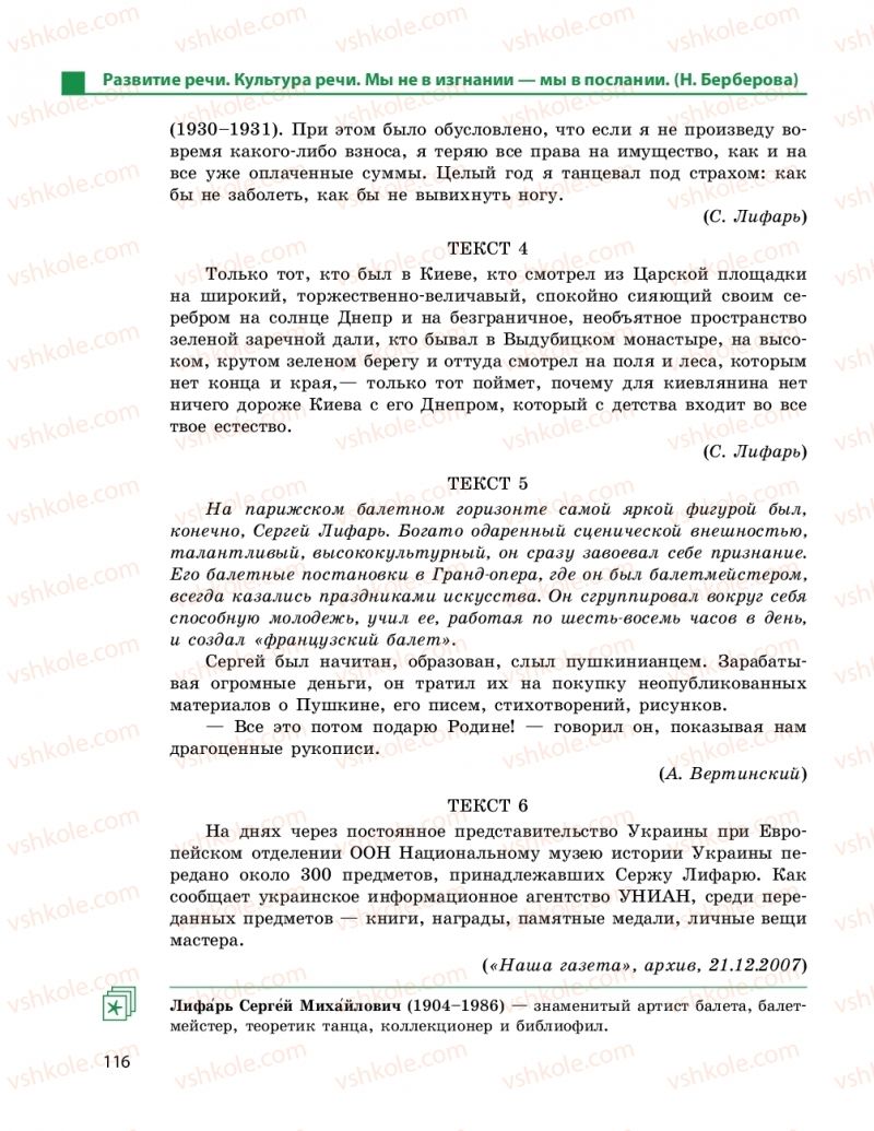 Страница 116 | Підручник Русский язык 11 клас Н. Ф. Баландина, Е. В. Зима 2019 7 год обучения