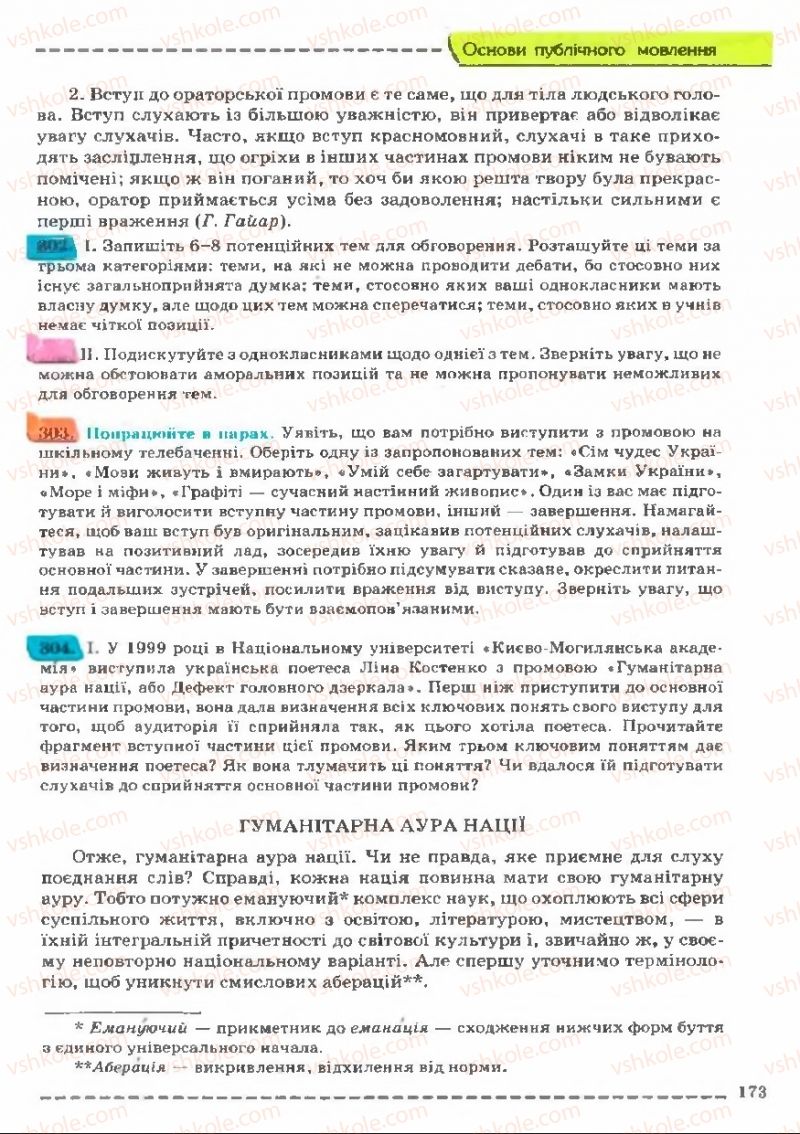 Страница 173 | Підручник Українська мова 11 клас В.В. Заболотний, О.В. Заболотний 2011