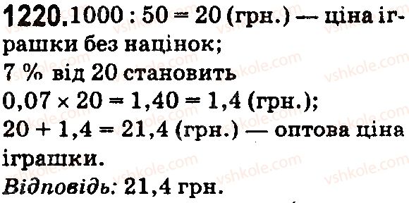Завдання 1220 - § 33. Задачі на відсотки - Розділ 7. ВІДСОТКИ. СЕРЕДНЄ АРИФМЕТИЧНЕ