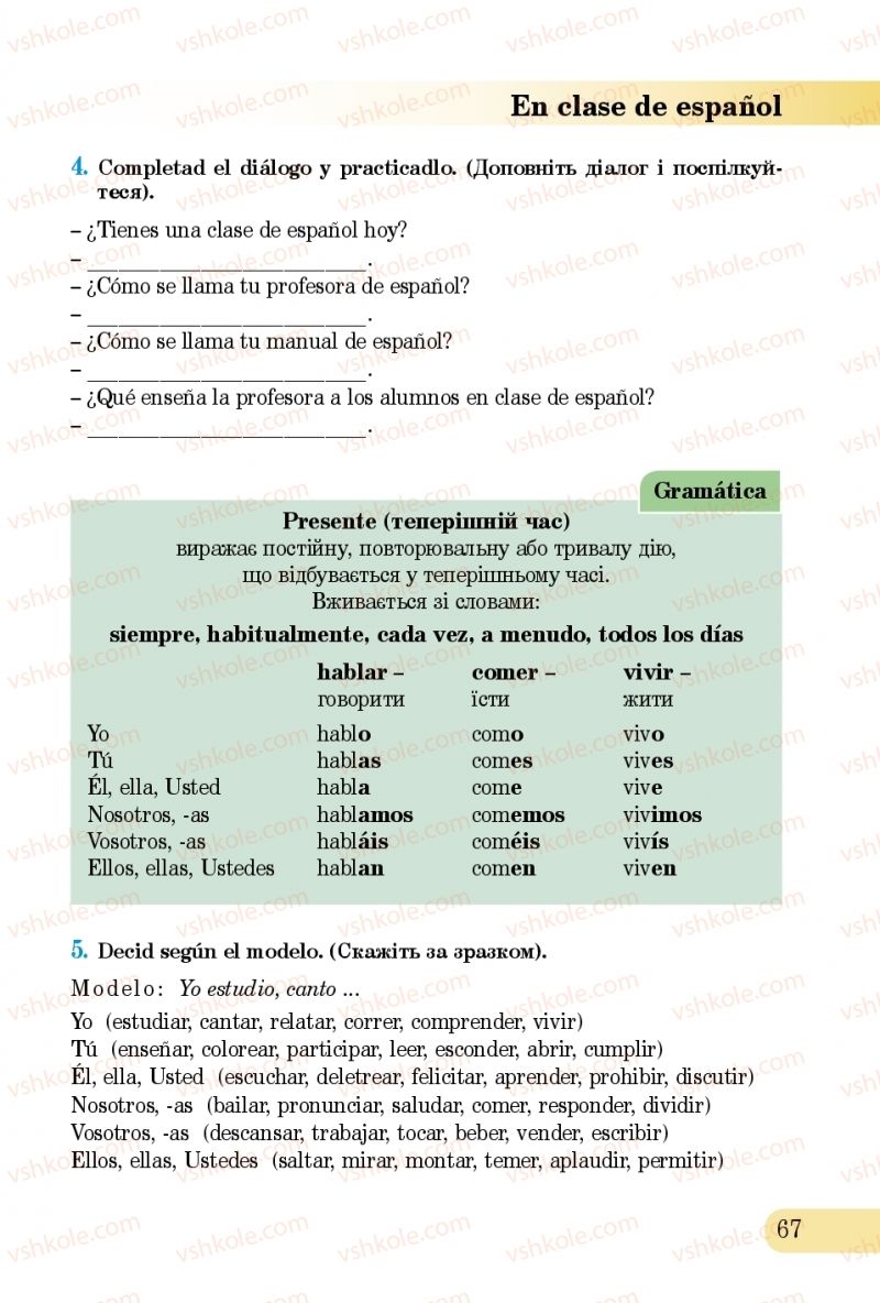 Страница 67 | Підручник Іспанська мова 5 клас В.Г. Редько, В.І. Береславська 2013 1 рік навчання