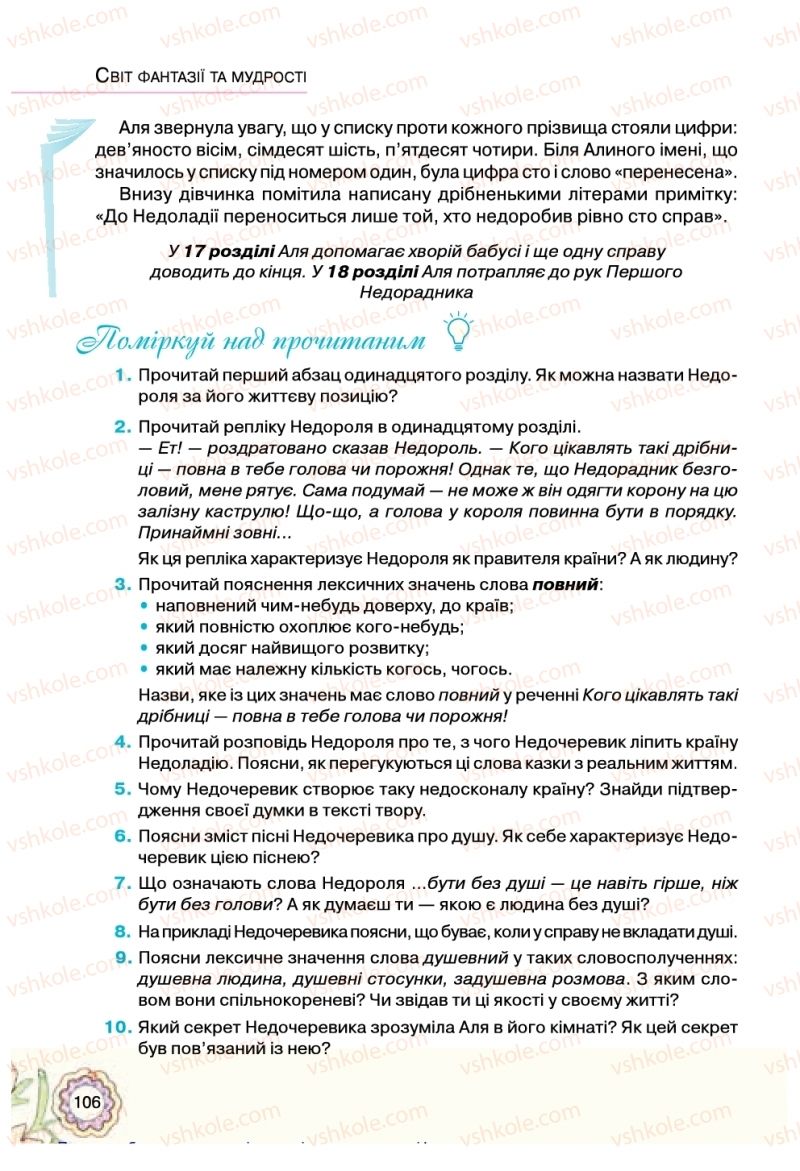 Страница 106 | Підручник Українська література 5 клас Л.Т. Коваленко 2018