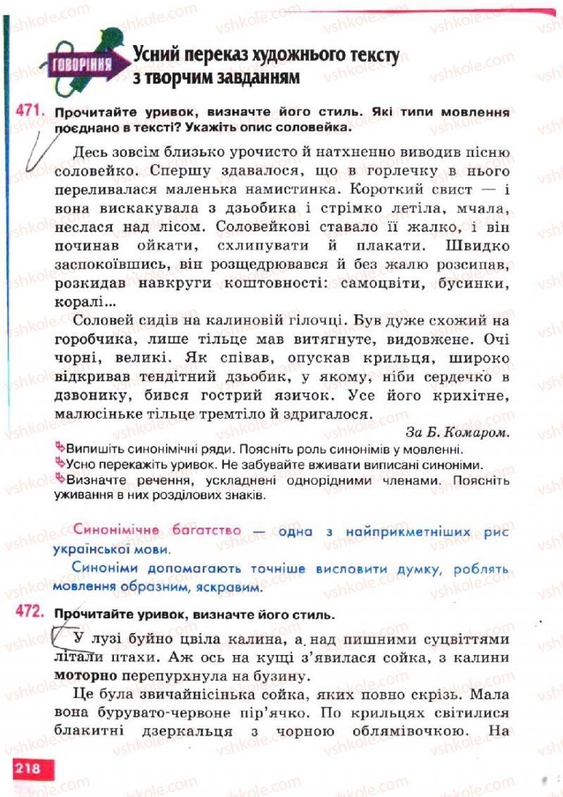 Страница 218 | Підручник Українська мова 5 клас О.П. Глазова, Ю.Б. Кузнецов 2005