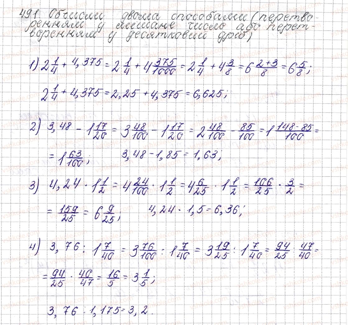 Завдання 491 - § 19. Розв’язування вправ на всі дії зі звичайними та десятковими дробами - Розділ 2. Звичайні дроби |