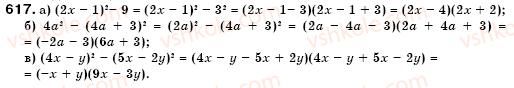 Завдання 617 - 18. Розкладання на множники різниці квадратів двох виразів - § 5. ФОРМУЛИ СКОРОЧЕНОГО МНОЖЕННЯ