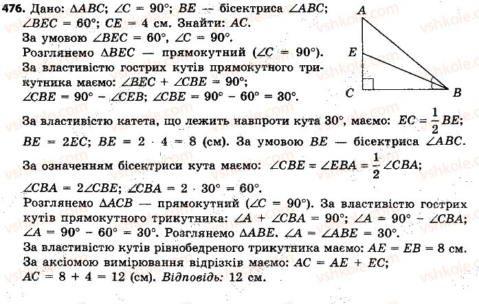 Завдання 476 - Розділ 2. Трикутники. Ознаки рівності трикутників |