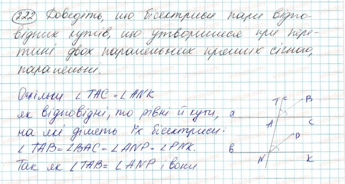 Завдання 222 - § 10. Властивість паралельних прямих. Властивість кутів, утворених при перетині паралельних прямих січною - Розділ 2. Взаємне розміщення прямих на площині |