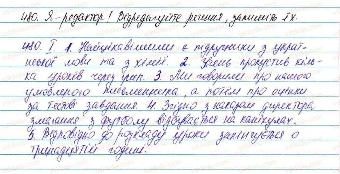 Завдання 480 - § 35. Прийменник як службова частина мови - Морфологія, орфографія. Службові частини мови