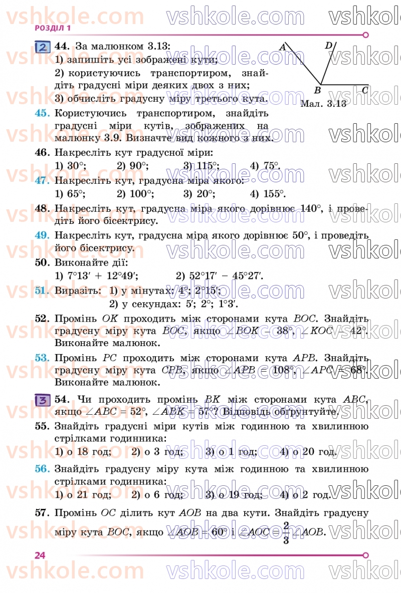 Розділ 1. Елементарні геометричні фігури та їх властивості - § 3. Кут