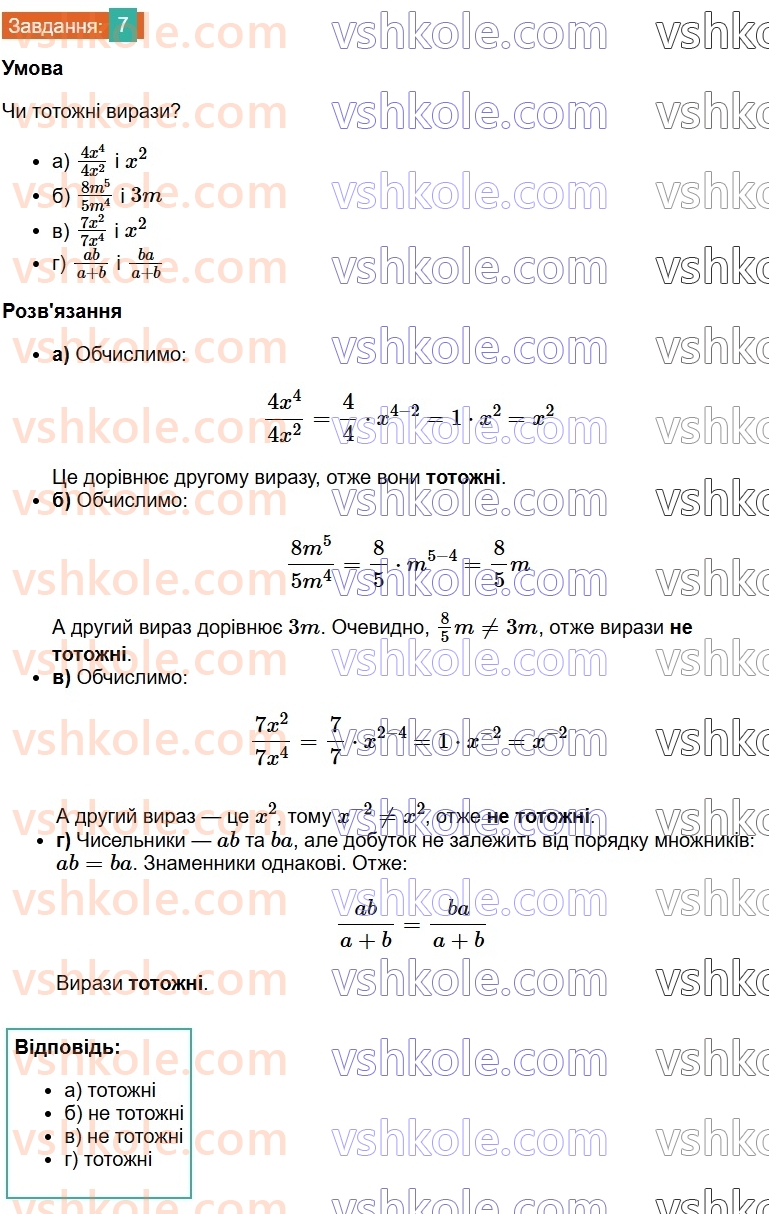 Завдання 7 - § 1. Ділення і дроби - Розділ 1. Раціональні вирази