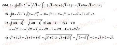 Завдання 604 - § 17. Арифметичний квадратний корінь з добутку, дробу і степеня. Добуток і частка квадратних коренів. Тотожність (Уроки 39-41) - Розділ 2. КВАДРАТНІ КОРЕНІ. ДІЙСНІ ЧИСЛА |