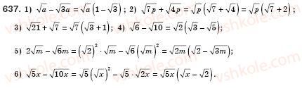 Завдання 637 - § 18. Тотожні перетворення виразів, що містять квадратні корені (Уроки 42-44) - Розділ 2. КВАДРАТНІ КОРЕНІ. ДІЙСНІ ЧИСЛА |