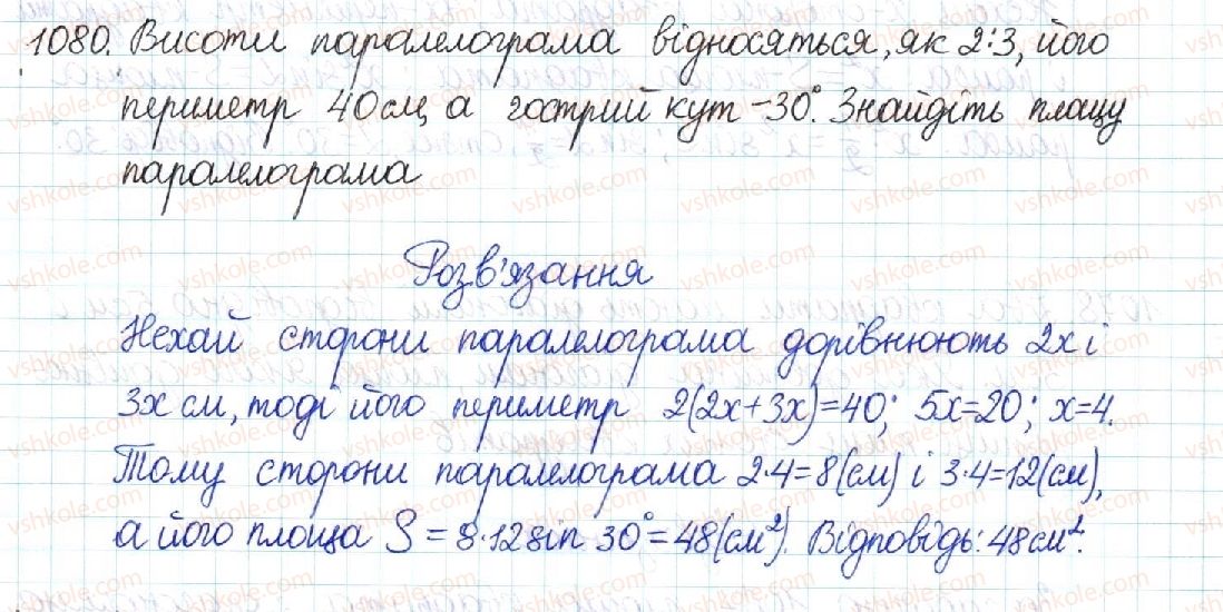 Завдання 1080 - § 22. Площа паралелограма - Розділ 4. Многокутники. Площі многокутників