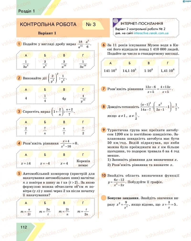 Страница 112 | Підручник Алгебра 8 клас Н.С. Прокопенко, Ю.О. Захарійченко, Н.Л. Кінащук 2016