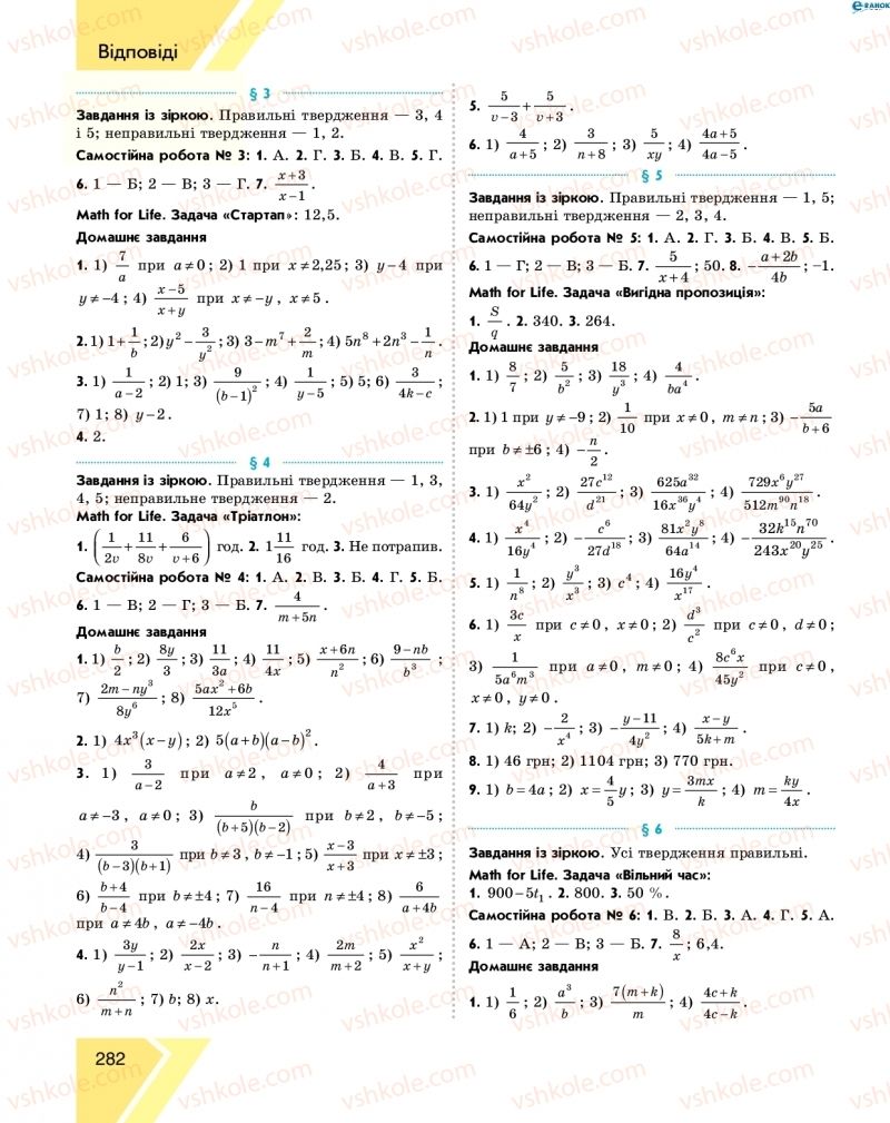 § 5. Множення та ділення раціональних дробів. Піднесення раціонального дробу до степенястр. 48 - 58