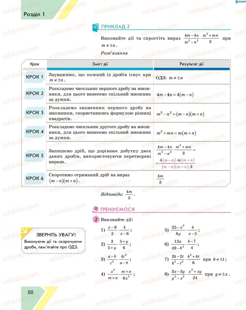 Розділ 1. Раціональні вирази - § 5. Множення та ділення раціональних дробів. Піднесення раціонального дробу до степеня