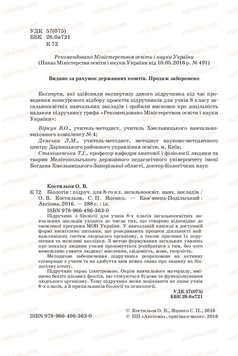 Страница 2 | Підручник Біологія 8 клас О.В. Костильов, С.П. Яценко 2016