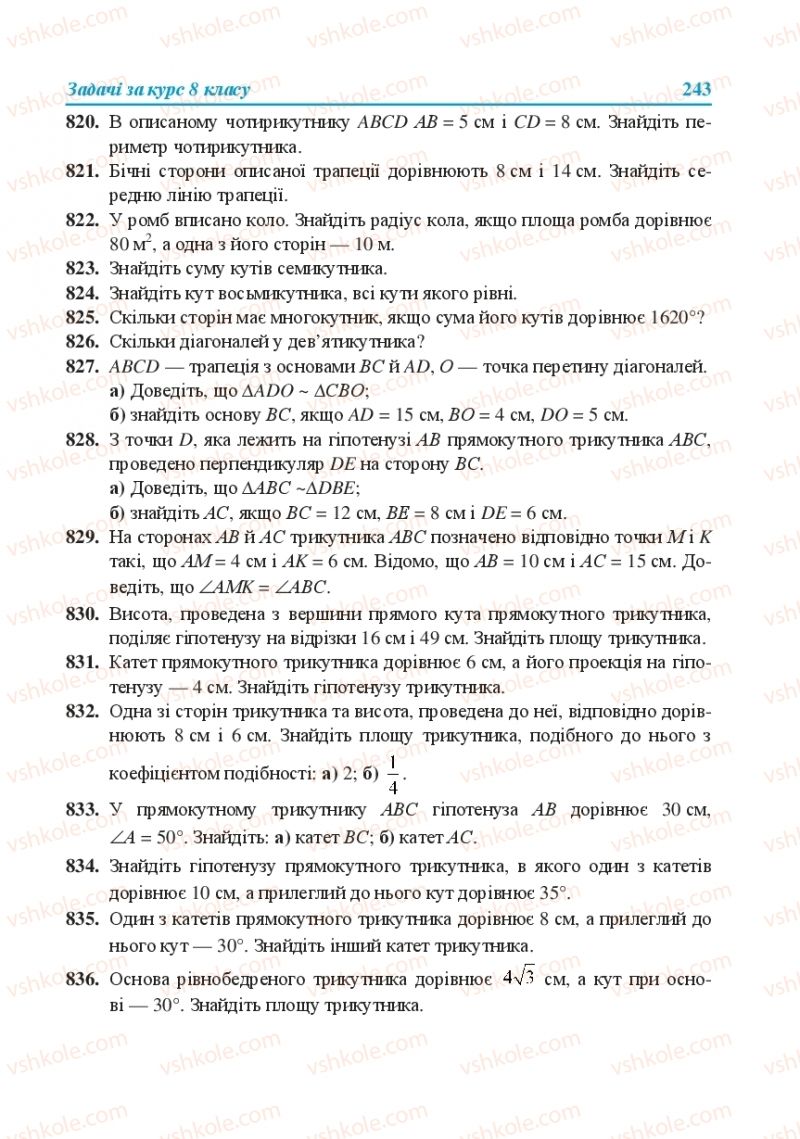 Страница 243 | Підручник Геометрія 8 клас О.М. Роганін, А.М. Капіносов, Л.І. Кондратьєва 2016