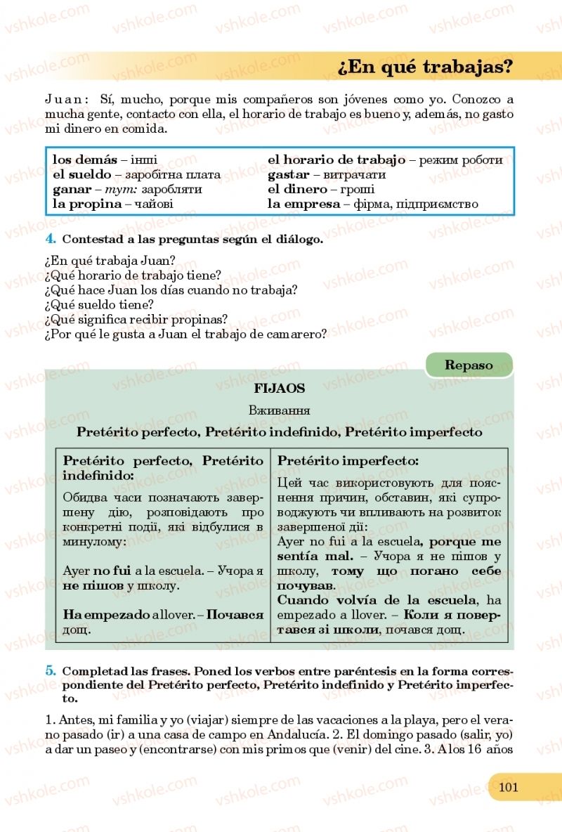 Страница 101 | Підручник Іспанська мова 8 клас В.Г. Редько, І.Ю. Цимбалістий 2016 4 рік навчання