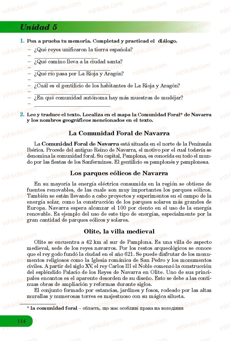 Страница 114 | Підручник Іспанська мова 8 клас В.Г. Редько, В.І. Береславська 2016 8 рік навчання