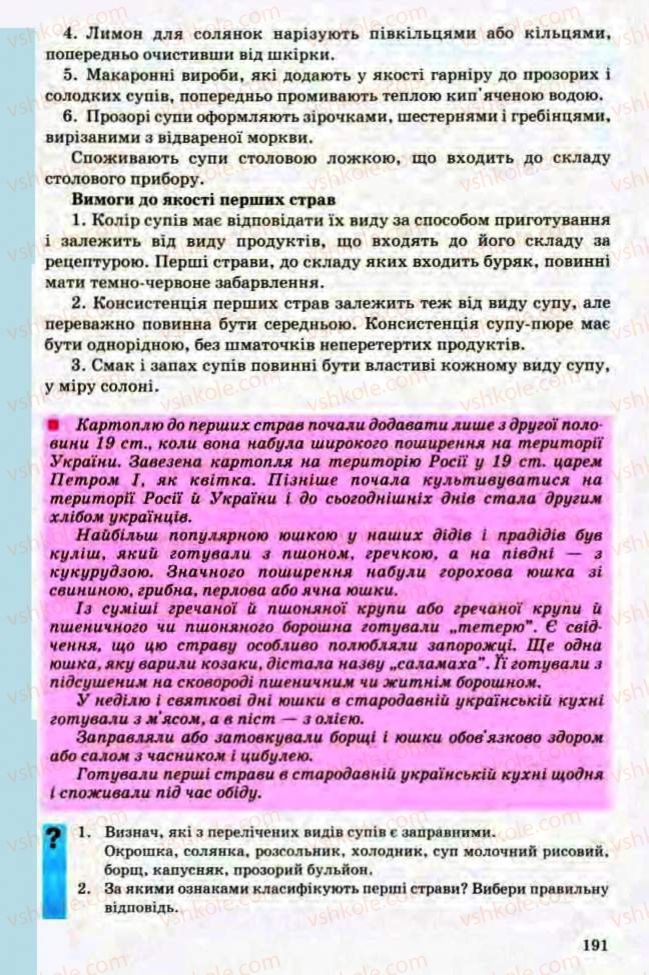 Страница 191 | Підручник Трудове навчання 8 клас Т.С. Мачача, Л.I. Денисенко, О.П. Гнеденко 2008 Обслуговуючі види праці