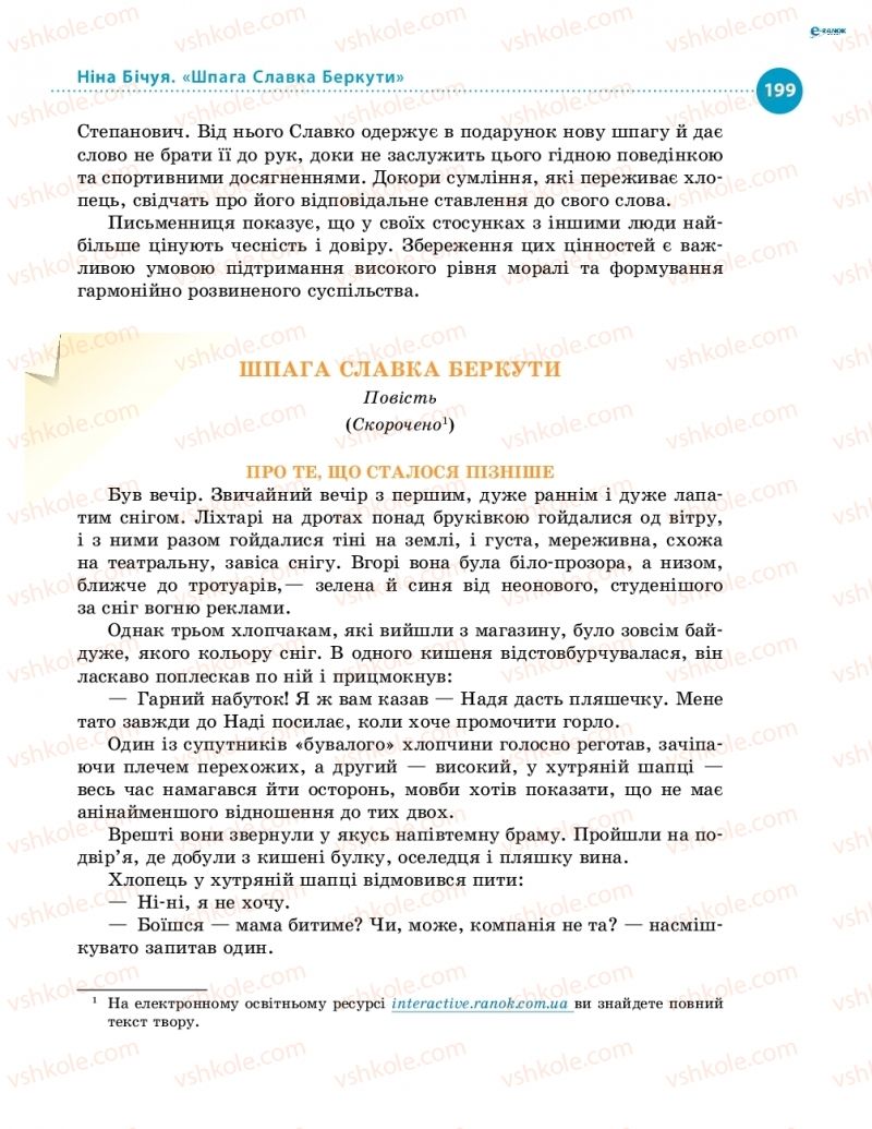 Страница 199 | Підручник Українська література 8 клас О.І. Борзенко, О.В. Лобусова 2016