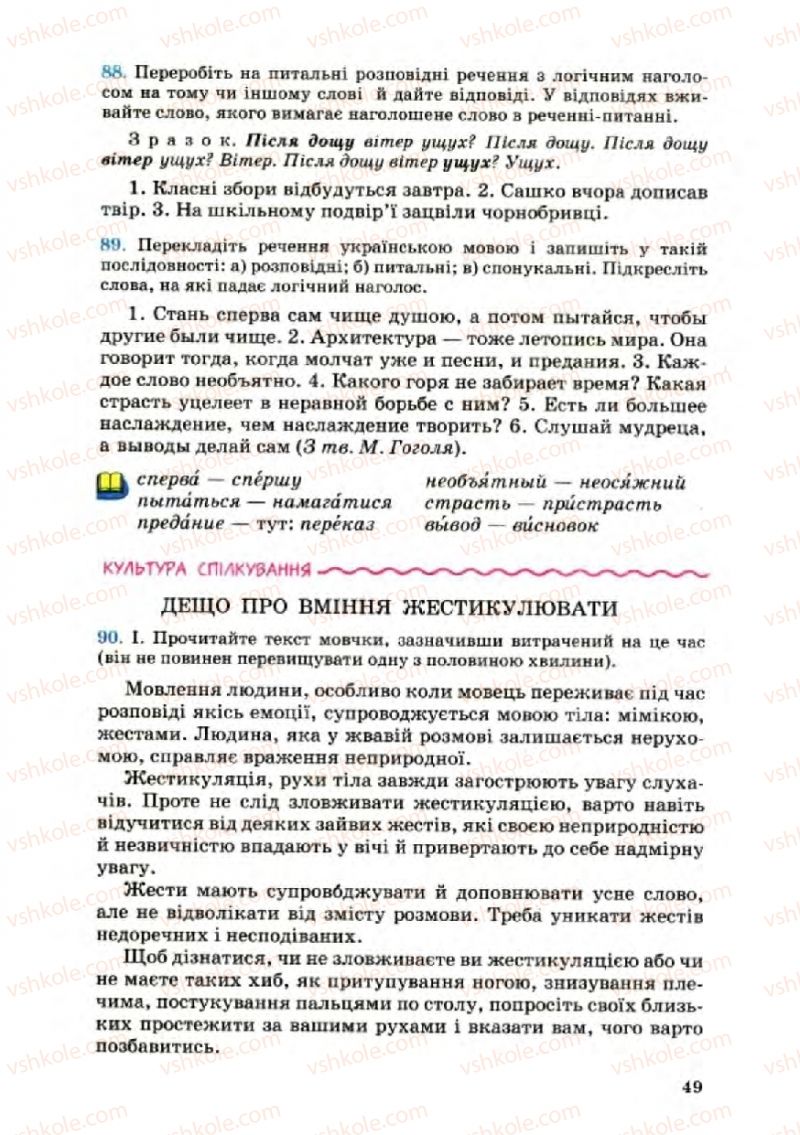 Страница 49 | Підручник Українська мова 8 клас А.А. Ворон, В.А. Солопенко 2008