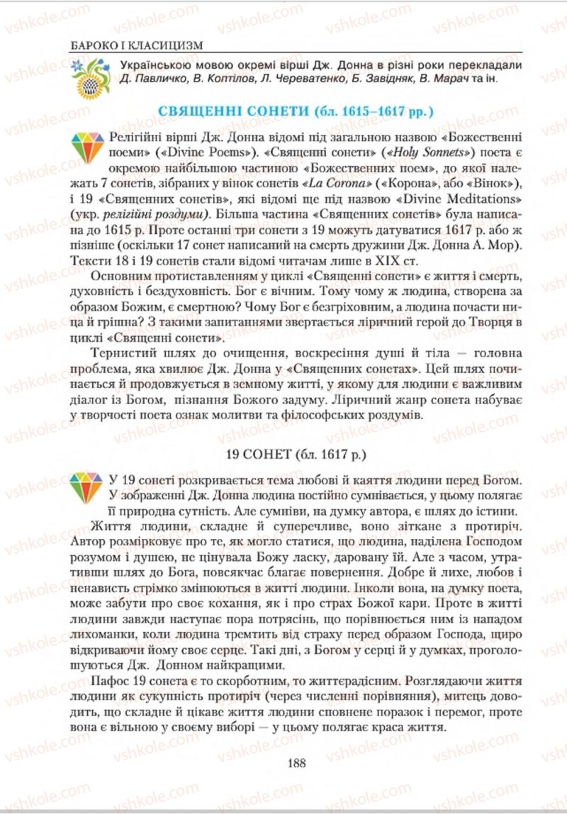 Страница 188 | Підручник Зарубіжна література 8 клас О.М. Ніколенко, В.Г. Туряниця 2016