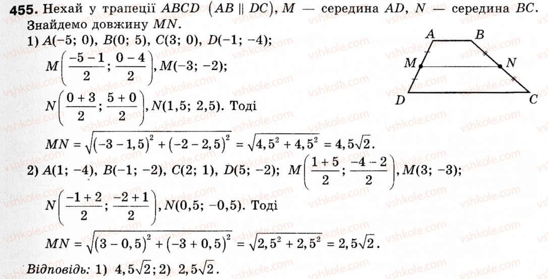 Завдання 455 - § 13. Координати середини відрізка - Розділ 3. Декартові координати на площині