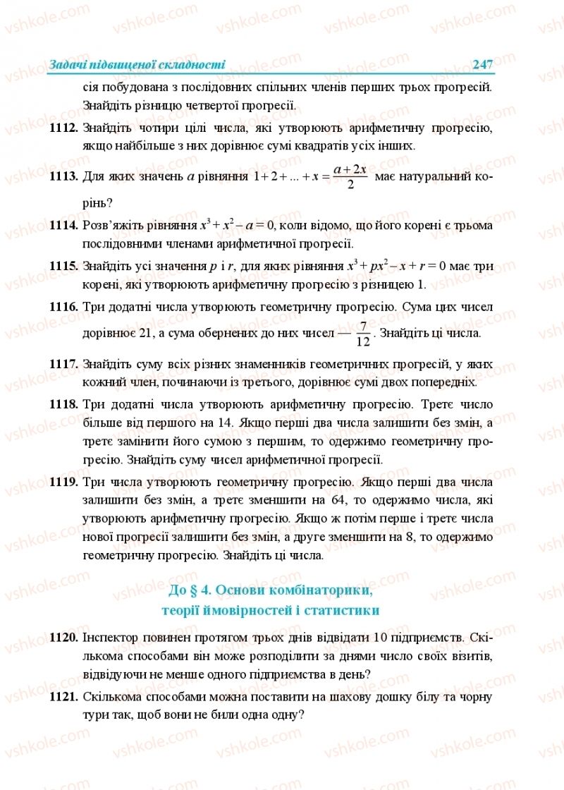 § 4. ОСНОВИ КОМБІНАТОРИКИ, ТЕОРІЇ ЙМОВІРНОСТЕЙ І СТАТИСТИКИстр. 211 - 240