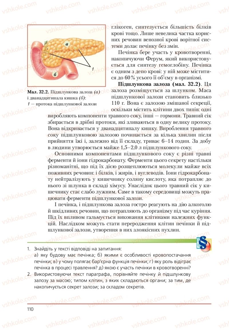§ 32. Печінка і підшлункова залозастр. 108 - 110