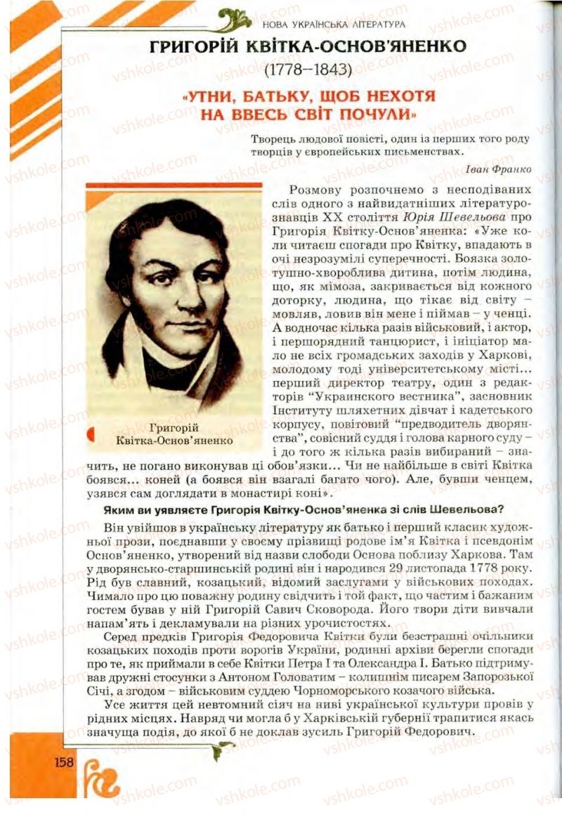 Страница 158 | Підручник Українська література 9 клас О.І. Міщенко 2009